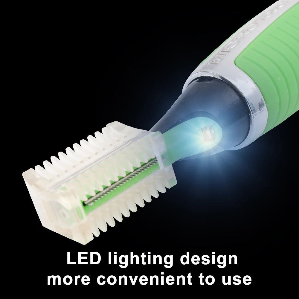 1.Hold the trimmer at a 45 degrees angle to desired area and trim in the opposite direction of your hair growth.